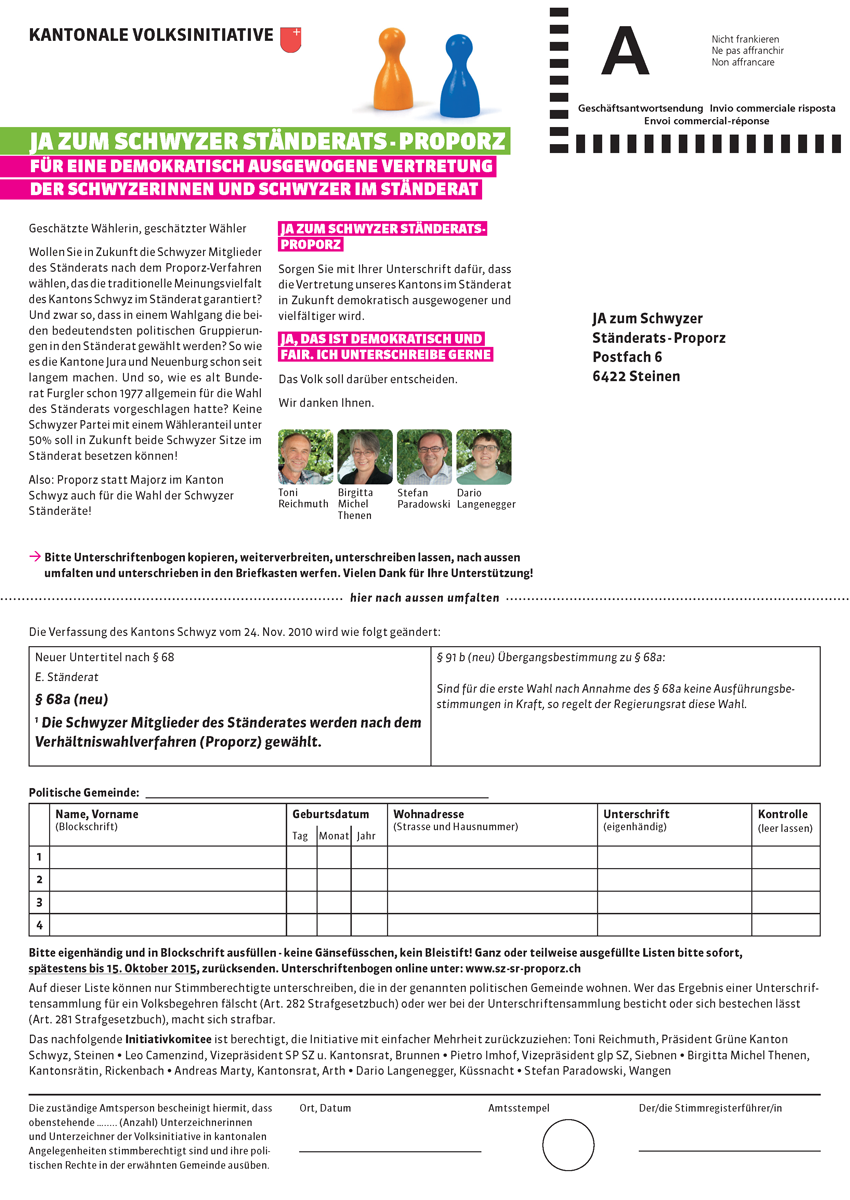 Drucksache:  Flyer A4 / Unterschriftenbogen A5 gefalten