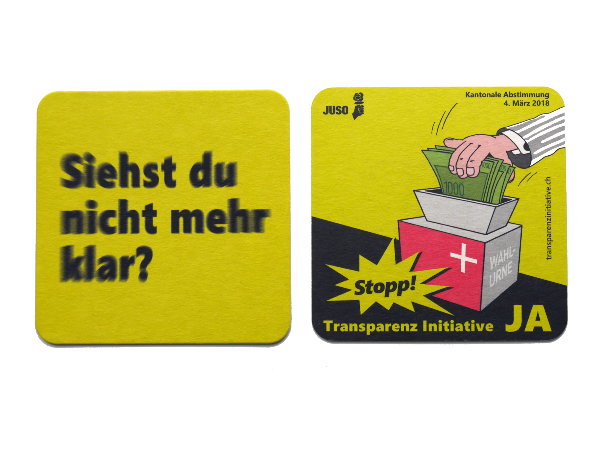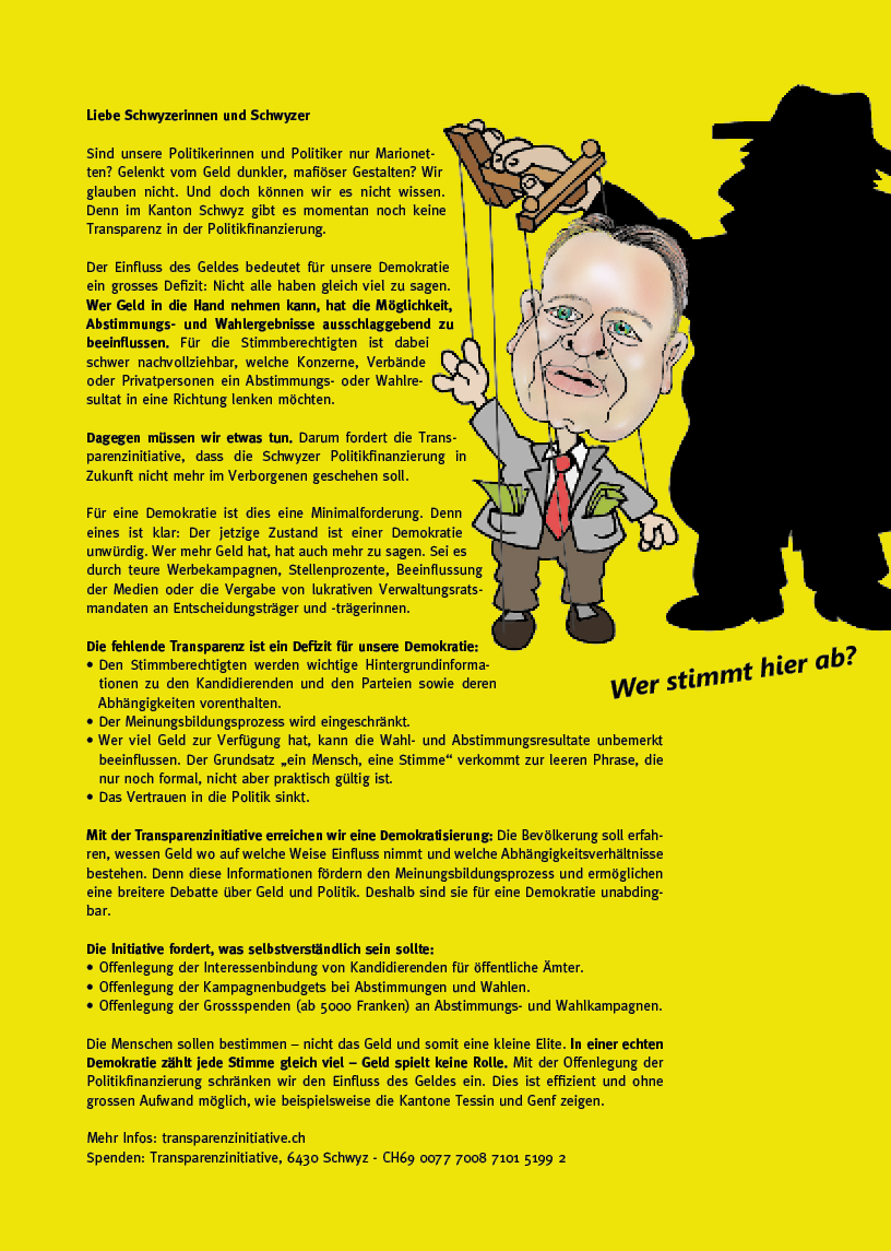 Kampagne: Transparenziniative Kontext: Promotion Kant. Abstimmung Verantwortlich für: Gestaltung Drucksachen Illustration: bei Gibsy
